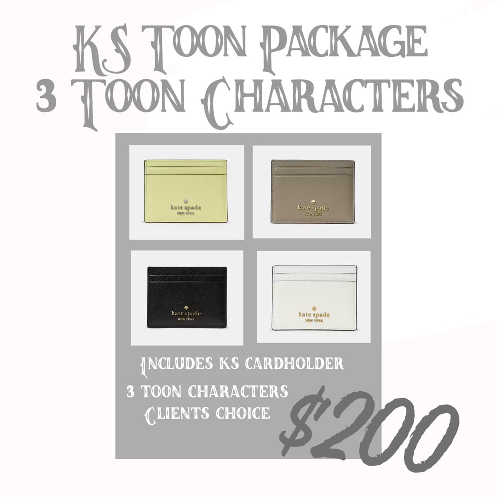 Package includes a Kate Spade Cardholder and 3 toon characters of the clients choice